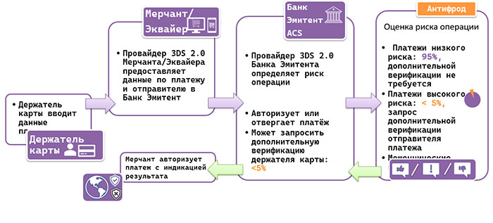 • Технология дополнительного мониторинга транзакций и оценки риска проводимых платежей по протоколу 3-D Secure 2.0. В режиме реального времени создаются более точные профили объектов в различных каналах, а также связи между ними (клиенты, получатели платежей, мерчанты, IP-адреса, реквизиты и геолокации клиентских устройств и т.д.); определяются кросс-канальные регулярные платежи, типовые устройства, скорость перемещения по IP; проверяются платежи по реквизитам и устройствам известных мошеннических операций, проведенных в других банковских каналах.